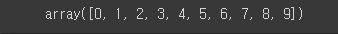 np.arange(10) # numpy.arange: 지정된 범위의 값으로 배열을 생성합니다.